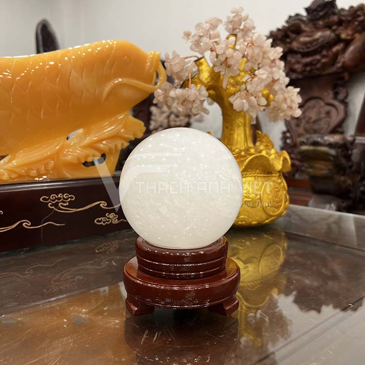 Nhiều người tin rằng, việc đặt quả cầu Canxit trắng trong nhà hoặc văn phòng sẽ giúp gia chủ thu hút tài lộc, cải thiện vận khí và bảo vệ sức khỏe cho các thành viên trong gia đình.