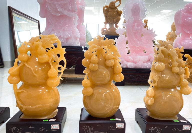 Tượng hồ lô có hình dạng đặc trưng với đường nét mềm mại, miệng nhỏ và bụng to. Người ta liên tưởng hồ lô như món pháp bảo giúp cho con người thu hút tiền bạc và ngọc ngà châu báu. Do đó, trưng bày tượng hồ lô tài lộc Ngọc Hoàng Long trên bàn làm việc là sự lựa chọn của nhiều người.